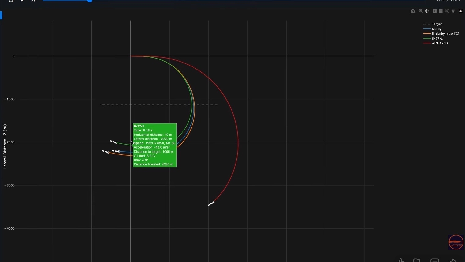 Well maybe because not pulling an excessively tight circle there like in the one I posted, idk different parameters yield different results though. And it not pulling as much as the AAM-4 isn’t surprising as that things a close range beast (g-pull doesn’t matter, it has a ton of fun AOA and starts pulling really fast off the rail)