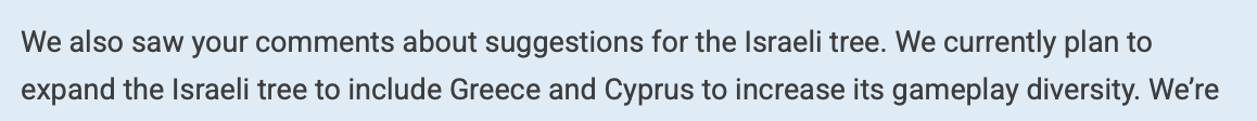 Would still have some copy paste as a standalone. With Israel it could have been a very unique tech tree imo.