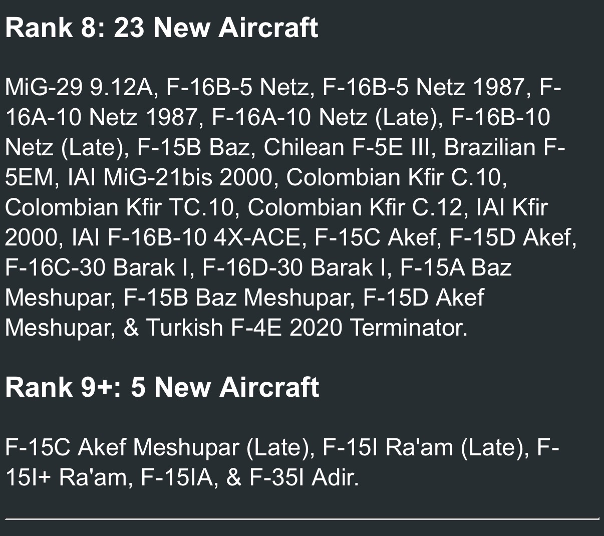 I will let you know that I am not as well-suited to Air discussions compared to those involving ground vehicles. If you wish to discuss Israeli aircraft, please consult the creator of this webpage, BasherBenDawg8.