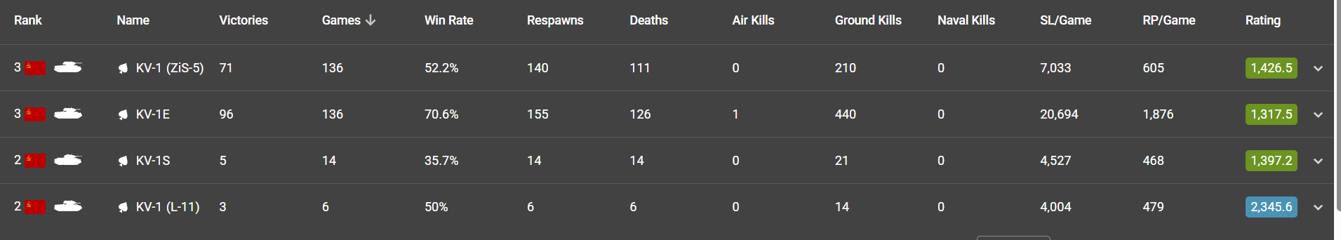 You are doing just fine with them. Statsharks gives ratings and colors based on the median stats of the said vehicle. Most bad to okayish tanks get a blue rating with 2kd since the tank performs bad most of the time. 2kd being just green on the kv1s shows that the median stats are rather high and the tank is doing fine.