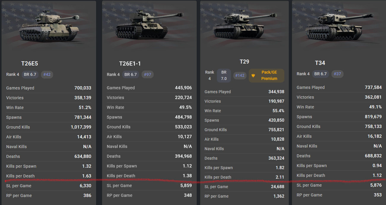 The US line up you call oppressive and constantly claim they need to go up in BR… they are good but above 1 k/d for heavies is not unexpected