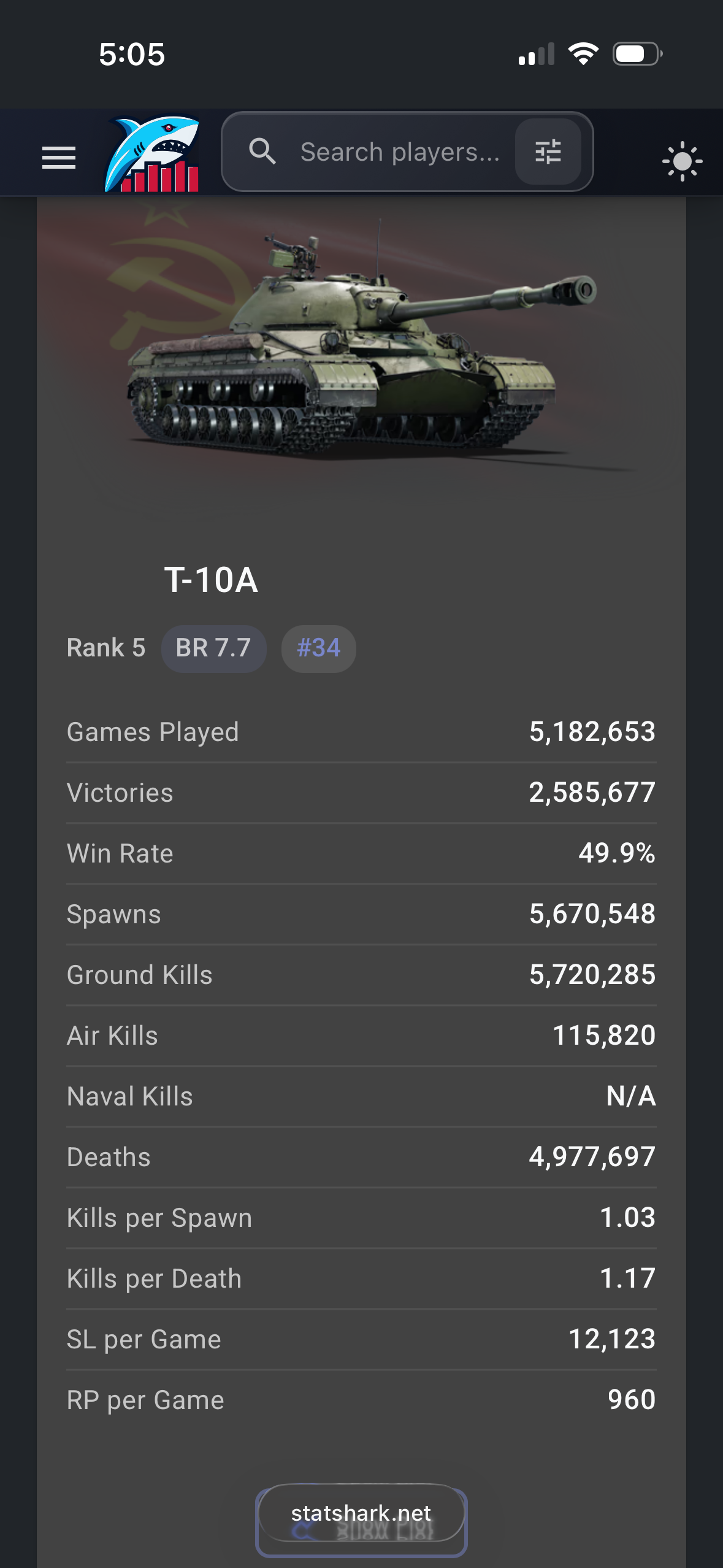KV-220: Stay at its BR, You forgot it has 100mm all around ye? It would be an absolute nuclear bomb vs a bunch of coughin babies. The strongest (i think) tank in 5.7 is the Commander version of the Porsche Tiger that has 200mm UFP, but only that still a tank with huge weakspots and arent that friendly agains errors if youre fighting lightly skilled players, the 220 had 100mm even in the butt and most of tanks cant even pen it, imagine this going against 4.7 💀