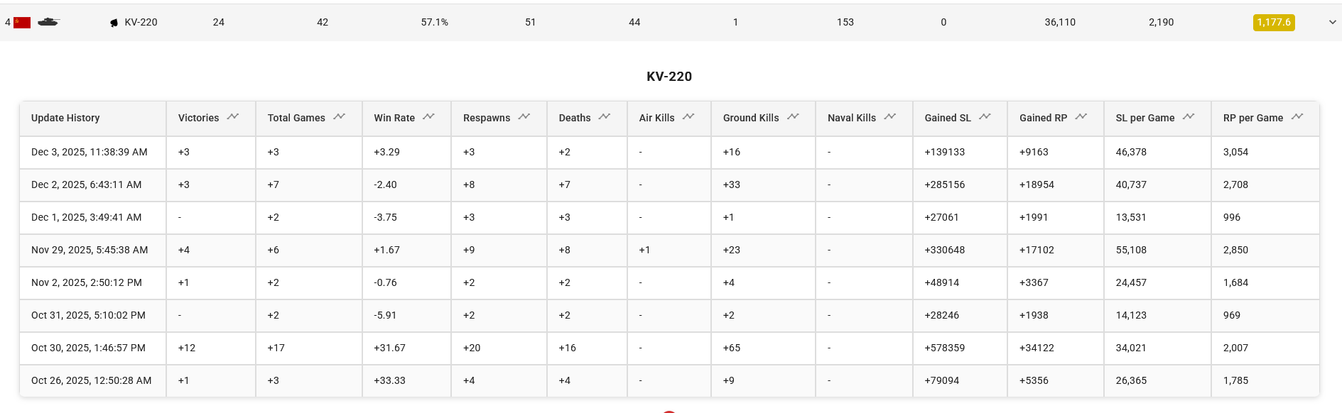 Here everyone can check his last battles with the Kv-220 and see he clearly is doing very well. So AGAIN is lying about russians tanks perform.