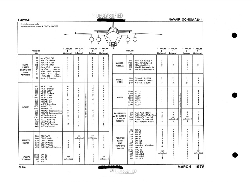However, the addition of the centerline pod came at the cost of reduced ordnance capacity, as it eliminated the use of the aft inboard stations (stations 2 and 4). Despite this, the TRIM system significantly improved the Intruder’s ability to detect and engage targets such as vehicles and trains at night or in low-light conditions, though it remained limited in poor weather, such as fog, clouds, or rain.