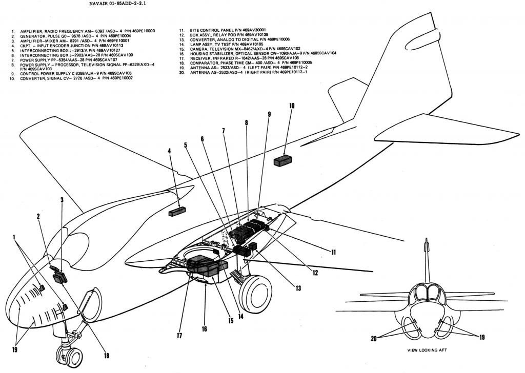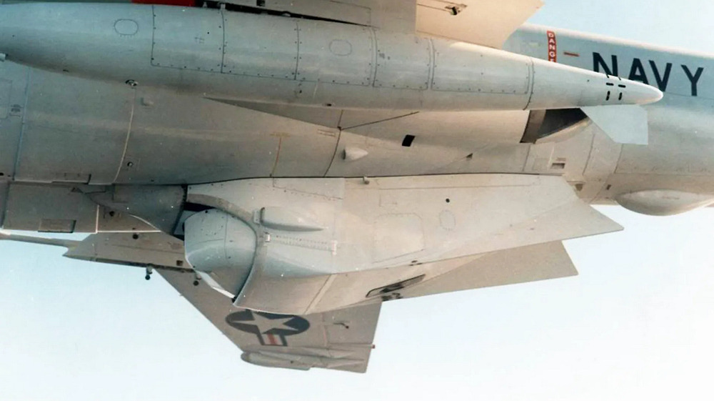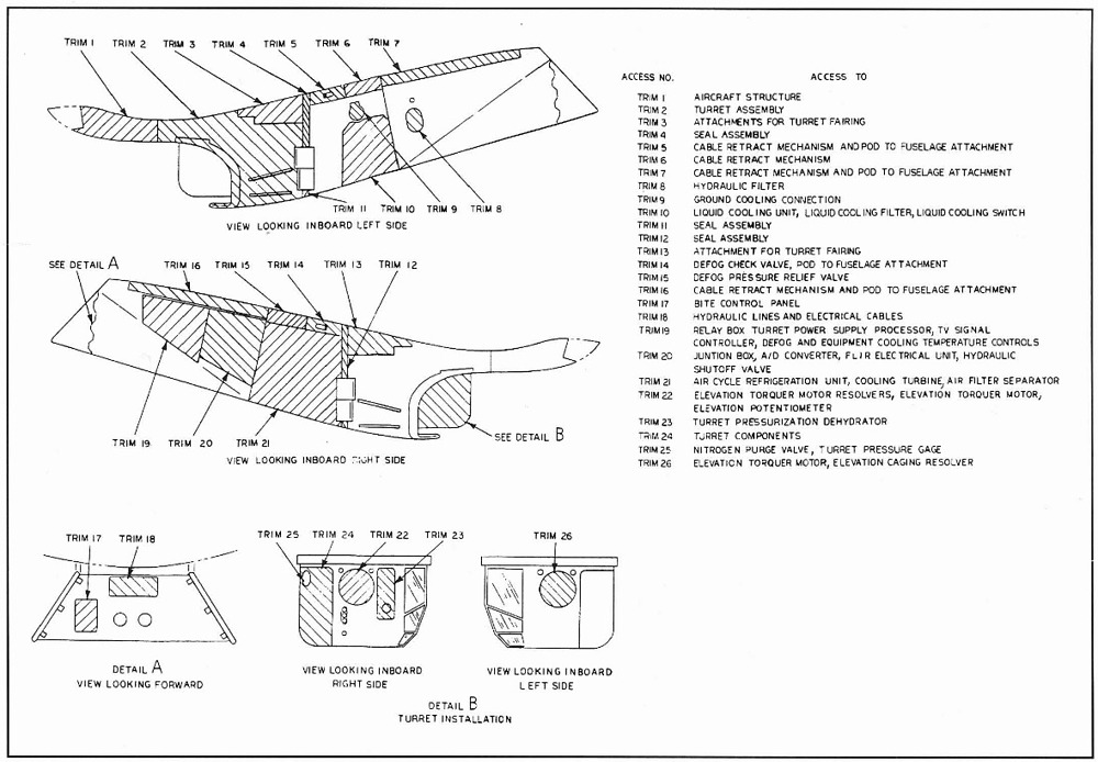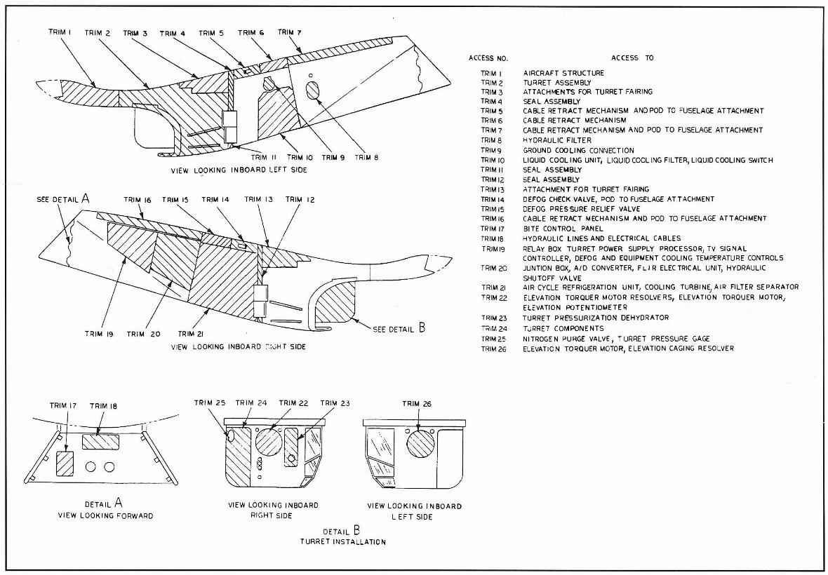 To address this limitation, the Navy initiated development of the Trails and Roads Interdiction Multisensor (TRIM) system in 1967. TRIM integrated a suite of electro-optical sensors, including Forward-Looking Infrared (FLIR) and Low-Light-Level Television (LLLTV), housed in a large teardrop-shaped pod mounted on the fuselage centerline station. The cockpit and onboard computers were also modified to accommodate the new TRIM systems.