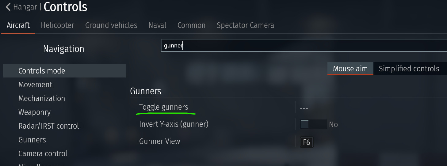 (There can also be a keybind for it. Search on “gunner” in Controls and look for the below option)