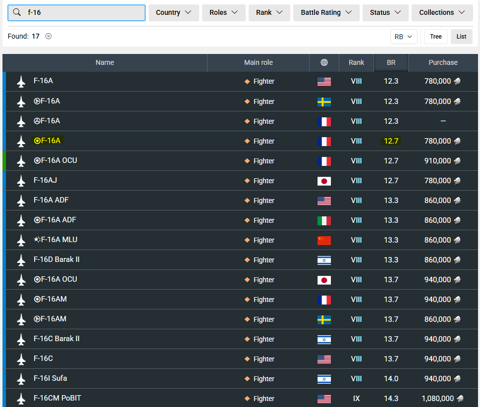 In the recent BR change, Belgium F-16A with AIM-9M on Tech Tree became 12.7BR and tied with F-16A OCU(Squadron)