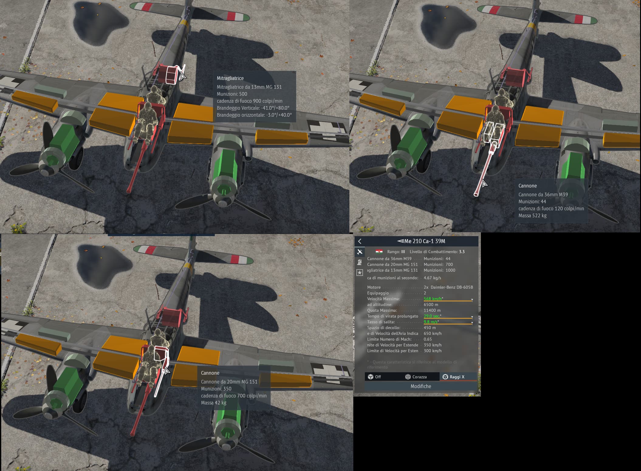 Here you can see that the machine guns it is equipped with are 20mm, 36mm and 13mm; there is no 7.92mm machine gun… Is it possible that the developers made a mistake and copied and pasted from the Me 210 Ca-1 without removing this modification from the Me 210 Ca-1 39M?
