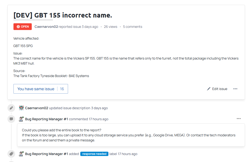 The rules for bug reports have not been updated on the website ( [Navigation] Technical Knowledge Base | War Thunder Wiki )