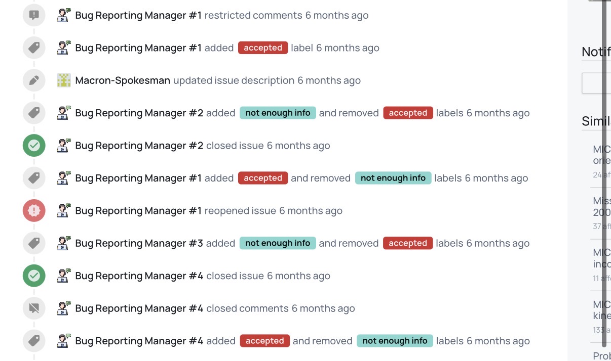 the related report is here: Community Bug Reporting System