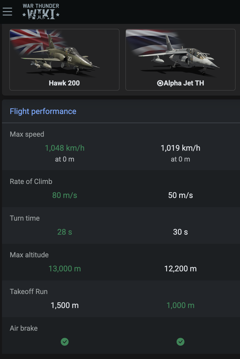 I think itβs actually somewhat criminal that the Hawk 200 is at the same BR as the Alpha Jet TH, with better cannons and an RWR with AGMs. Just expect that you will be last to the fight, maybe use that time to your advantage?
