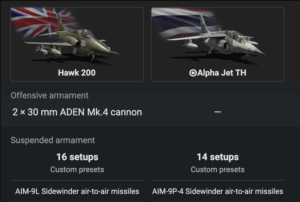 Alpha Jet TH might be one of my favorite jets as it gets AIM-9P-4, which are worse than AIM-9Ls. I would say that I am pretty competent with the Alpha Jet TH, being objectively worse than the Hawk 200. I say it all comes to skill, though.