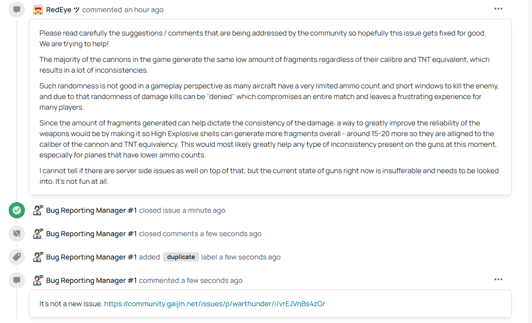 Welp, they closed the Aircraft Guns report with another imaginary fix for good this time.
