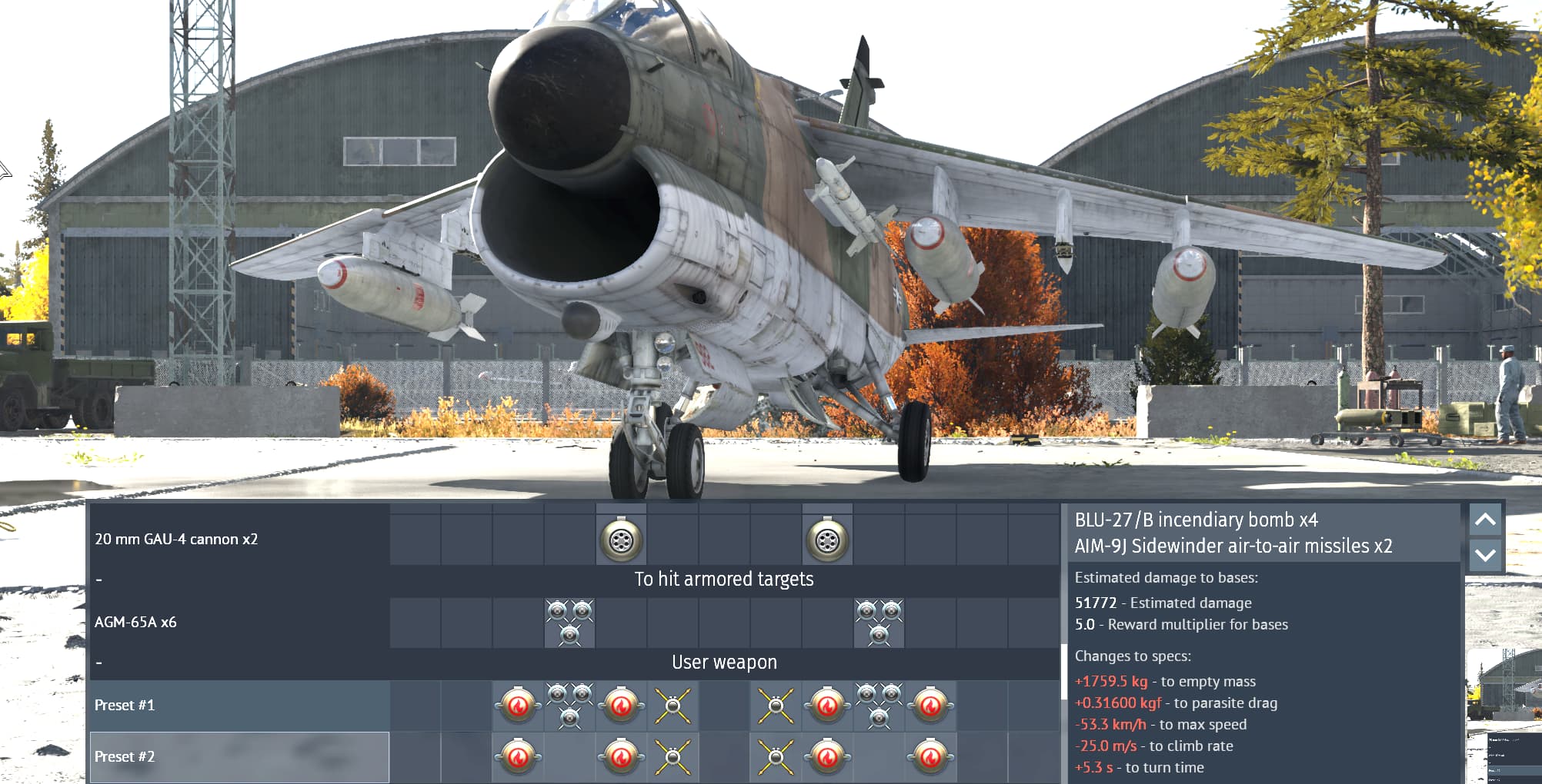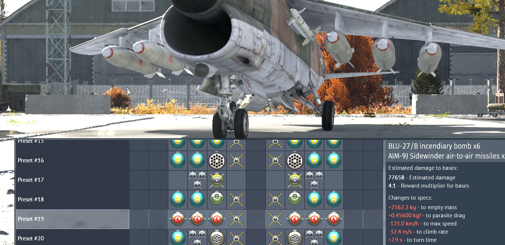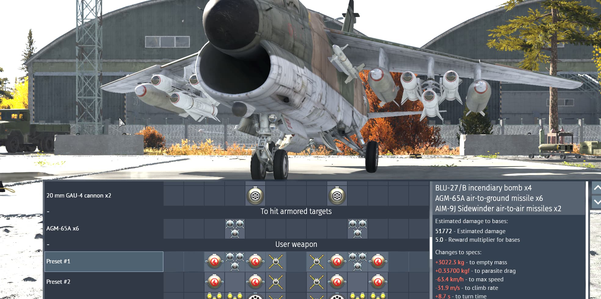 - AGM 65d triplets are 600 kg each and much less aerodynamic than single napalm reduces the top speed 1/6th of what napalm slows.