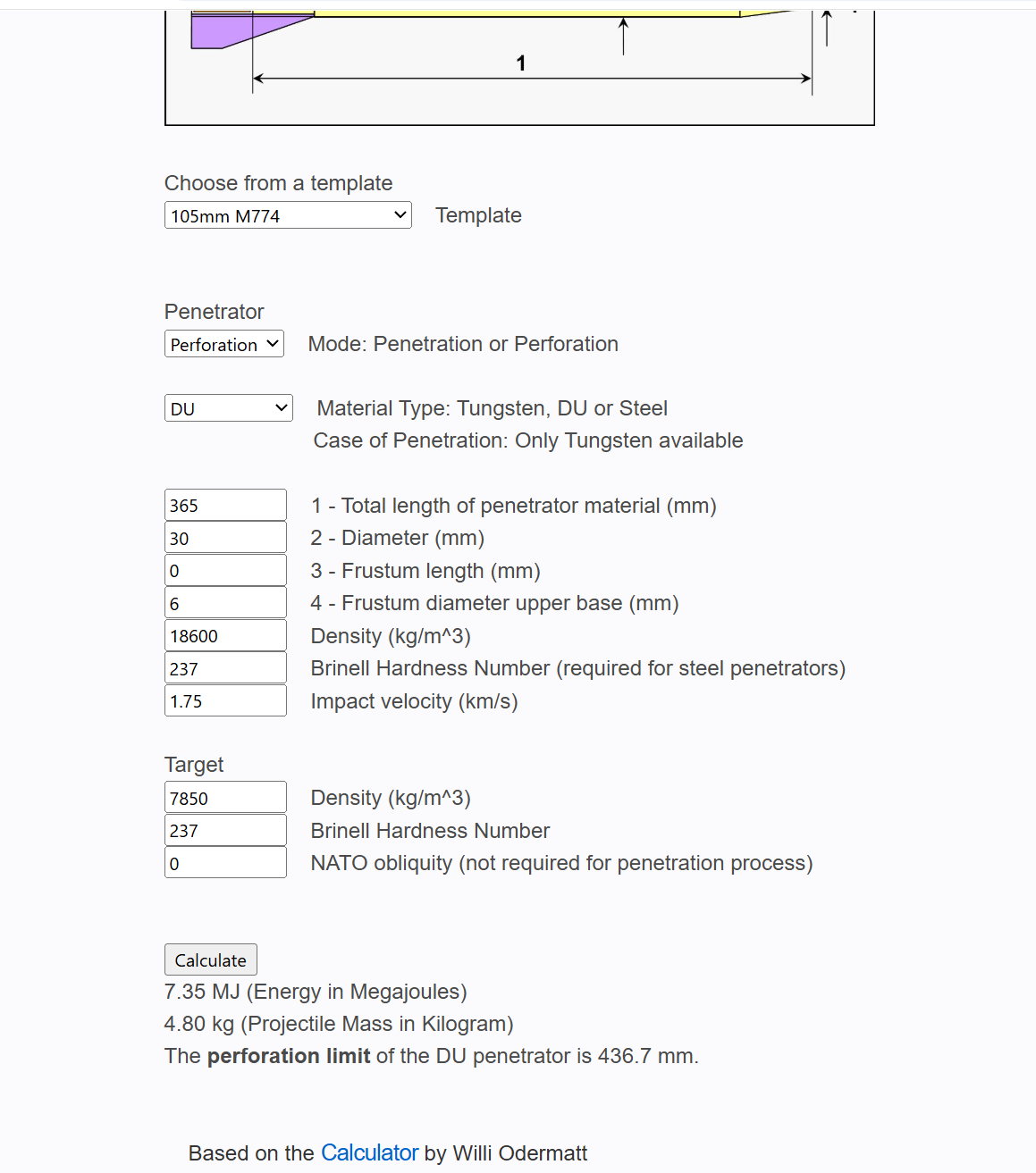 Both Grifel and XM-964 have penetrators circa 850mm long. While we know Grifel fires at 1980 m/s and even at 2km its still 1900 m/s, we don’t have info on the American round MV.