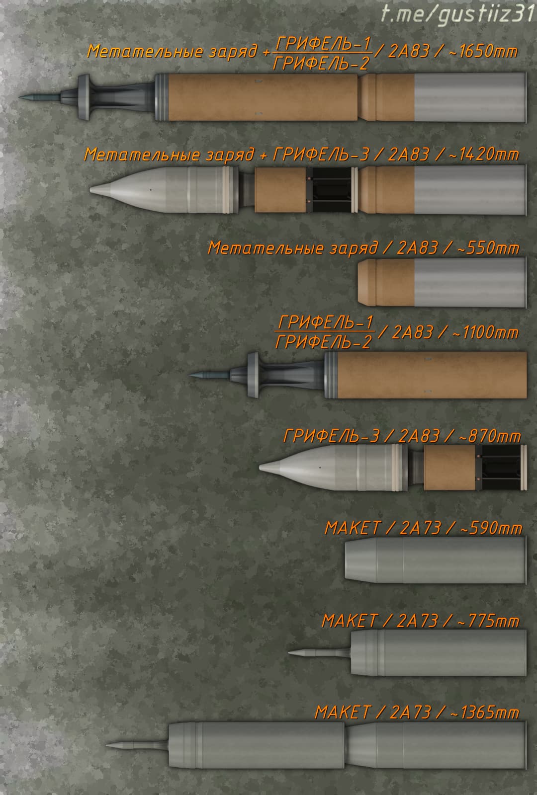Updated models by Gustiiz with all known 152mm tank ammunition developed by USSR and Russia. Note how different the older APFSDS for 2A73 is compared to Grifel-1/2