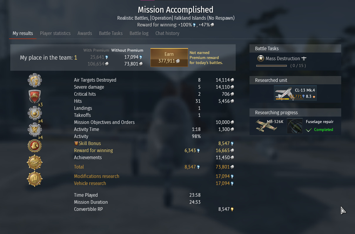 Another match with 6 kills (almost 7 if maneuver kills counted) with the JH-7A