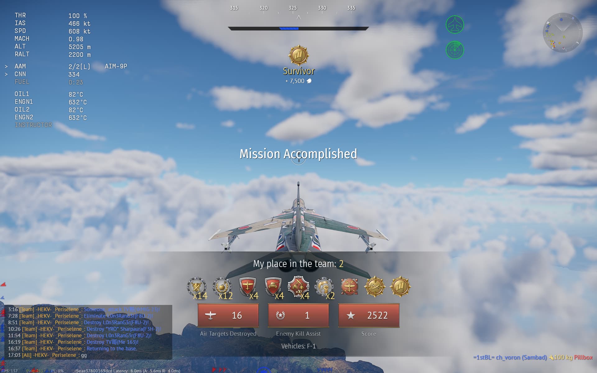 Periselene; Mitsubishi F-1; 16 kills