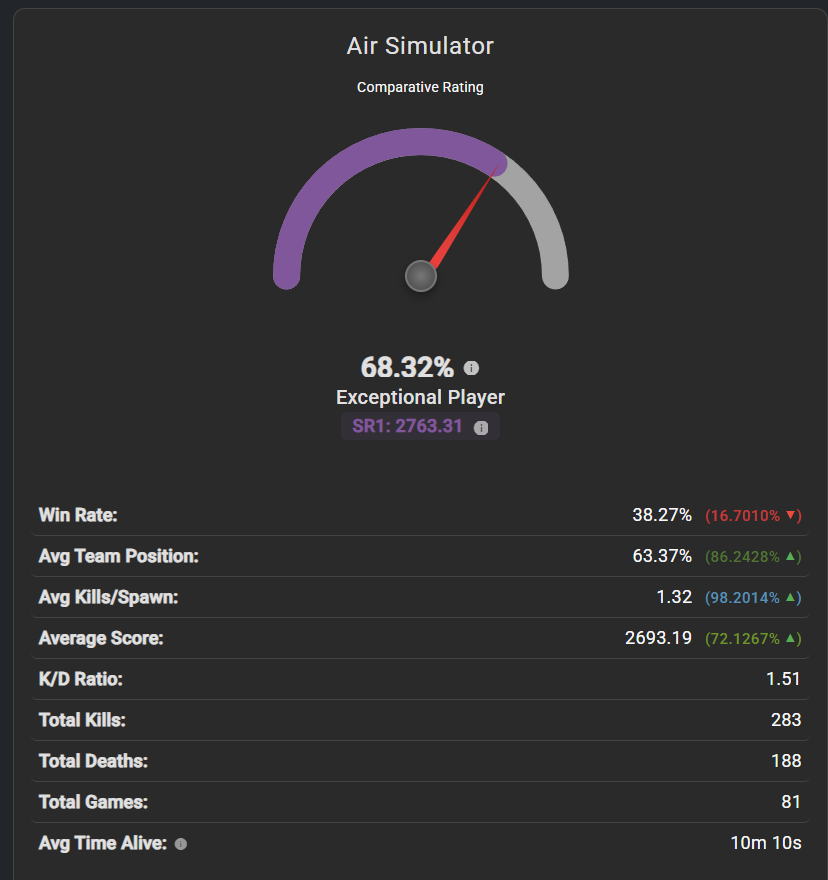 The ratings for sim are mega skewed because 90% of people there just bomb bases, meaning you can get great looking stats just by killing a couple people