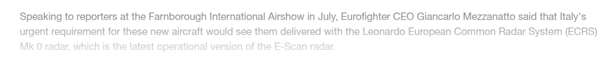 The fact that Italy will have ECRS mk.2 as the radar system for the ordered 24 T4+ Eurofighters.