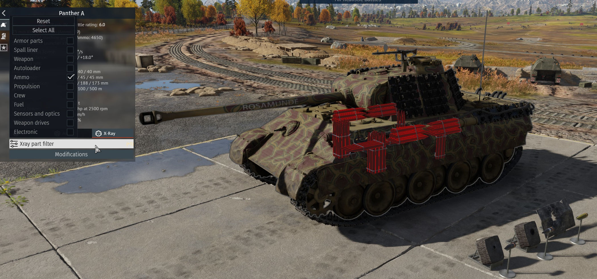 Autocannon tanks doesn’t matter much in most cases as they often have their ammo spread out to begin with, but taking a look in the x-ray (both in hangar and in test drive) can still be a good idea to see if you want to take less round or not as some have an extra magazine stored in the hull somewhere that almost never gets used and that can be removed if you want to increase survivability a little.