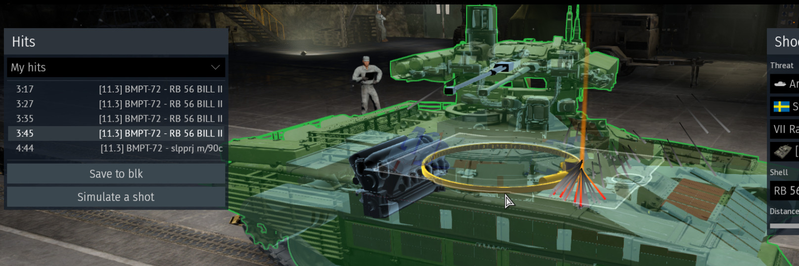 Example screenshots of places to shoot are below (the protection analysis is somewhat broken since it doesn’t always list ammo under ‘possible damage’ even if the test fire does take it) (I used the 105mm DM63 shell):