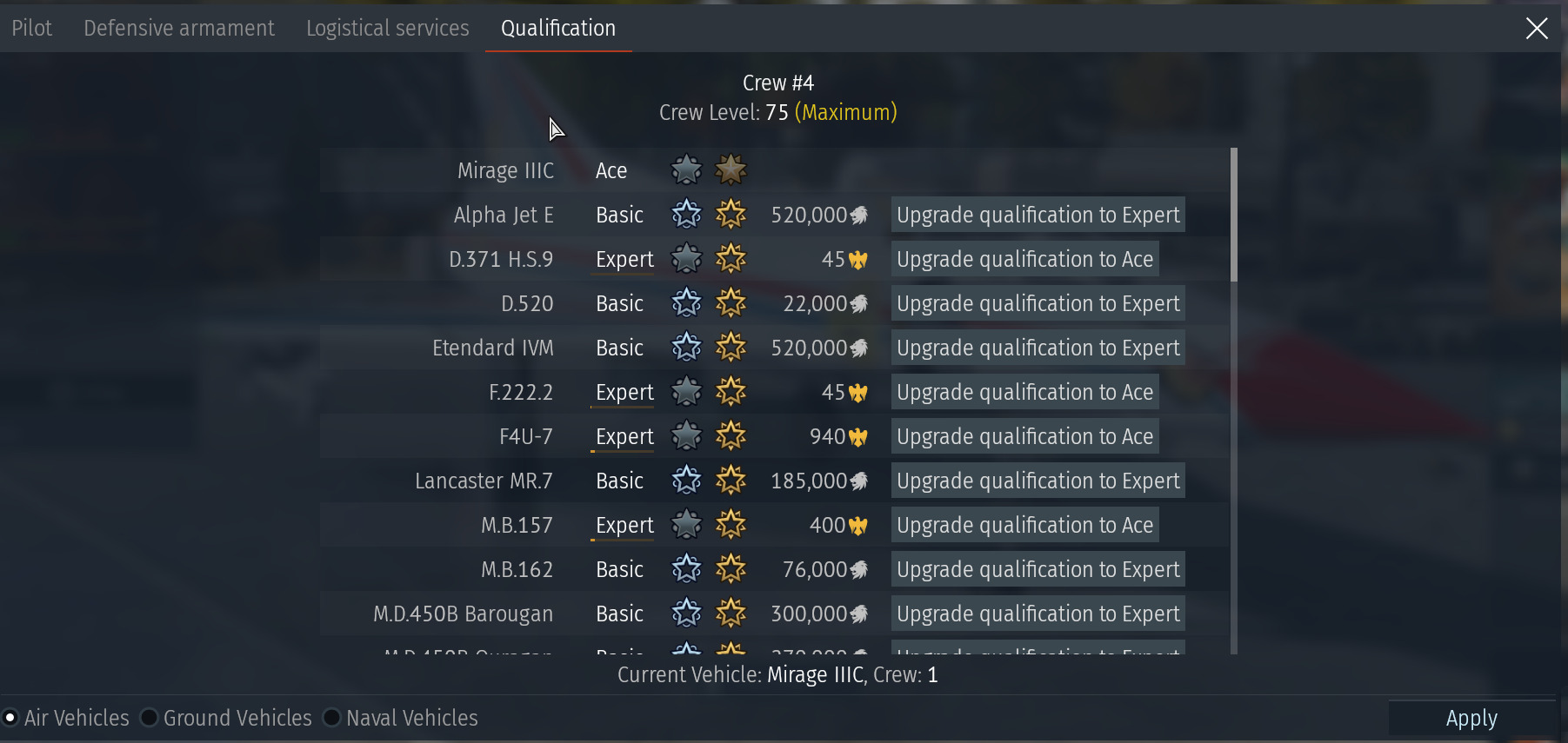 On flipside, crewing+experting is super expensive so ONLY crew planes you actually care about flying. Buy whatever you need to unlock trees and tiers but don’t crew them. As such, i disagree with Piano’s advice to just “move stuff to other crew slots for autorepair.” For autorepair to pay back all the SL you wasted crewing that plane, you’d need to wait for some enormous amount of time above Rank 3.