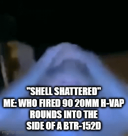 In a recent match, I was using the U-Sh 204 GK and encountered a BTR-152D that had not noticed me. I stopped, aimed flat against the side hull at point-blank range (≈10 m), and fired continuously until my gun overheated. Despite the ideal engagement, every round shattered. The BTR then turned its turret and eliminated my crew in a single burst.