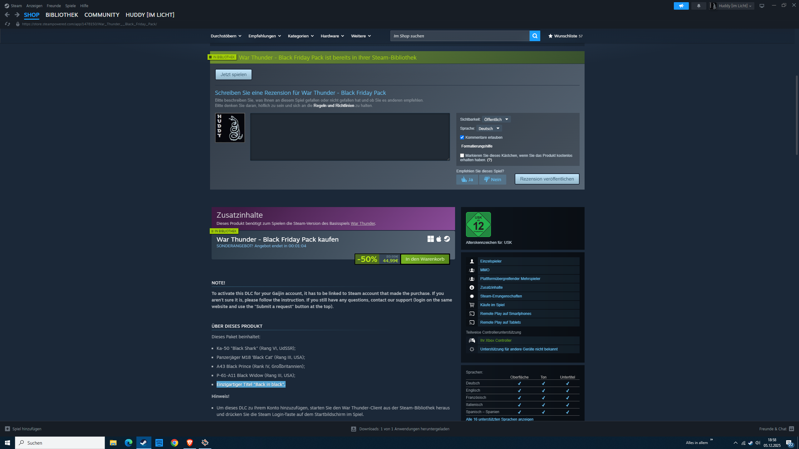 I got the Black Friday Pack, bought it through Steam. 4 vehicles (I received those) + title “Back in black”.