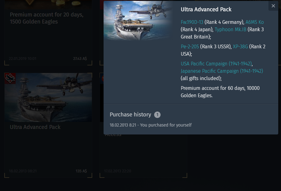 (Mustang mk ia, tada ki 61, 4500 for battlepass ans 30 day premium)
