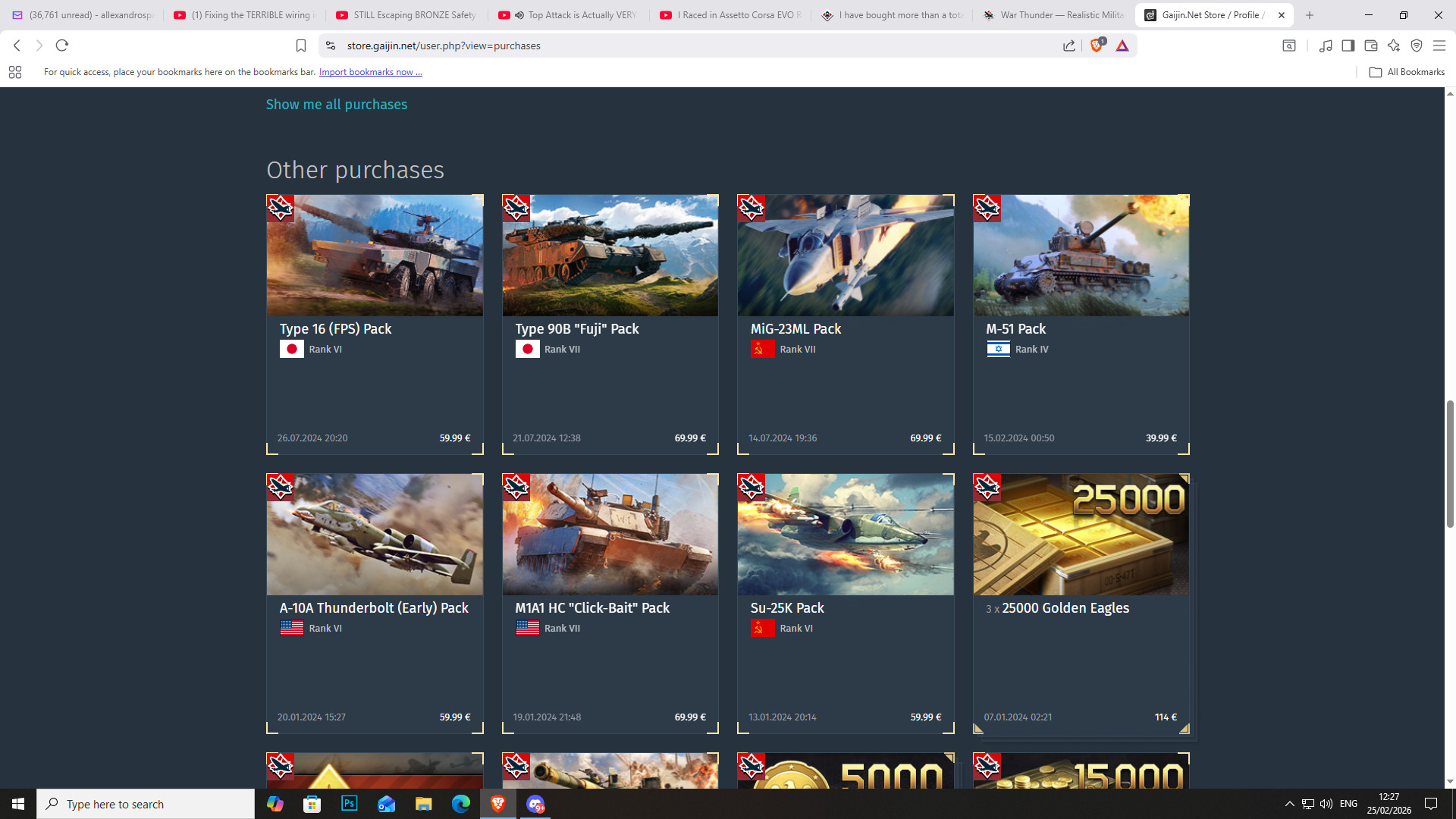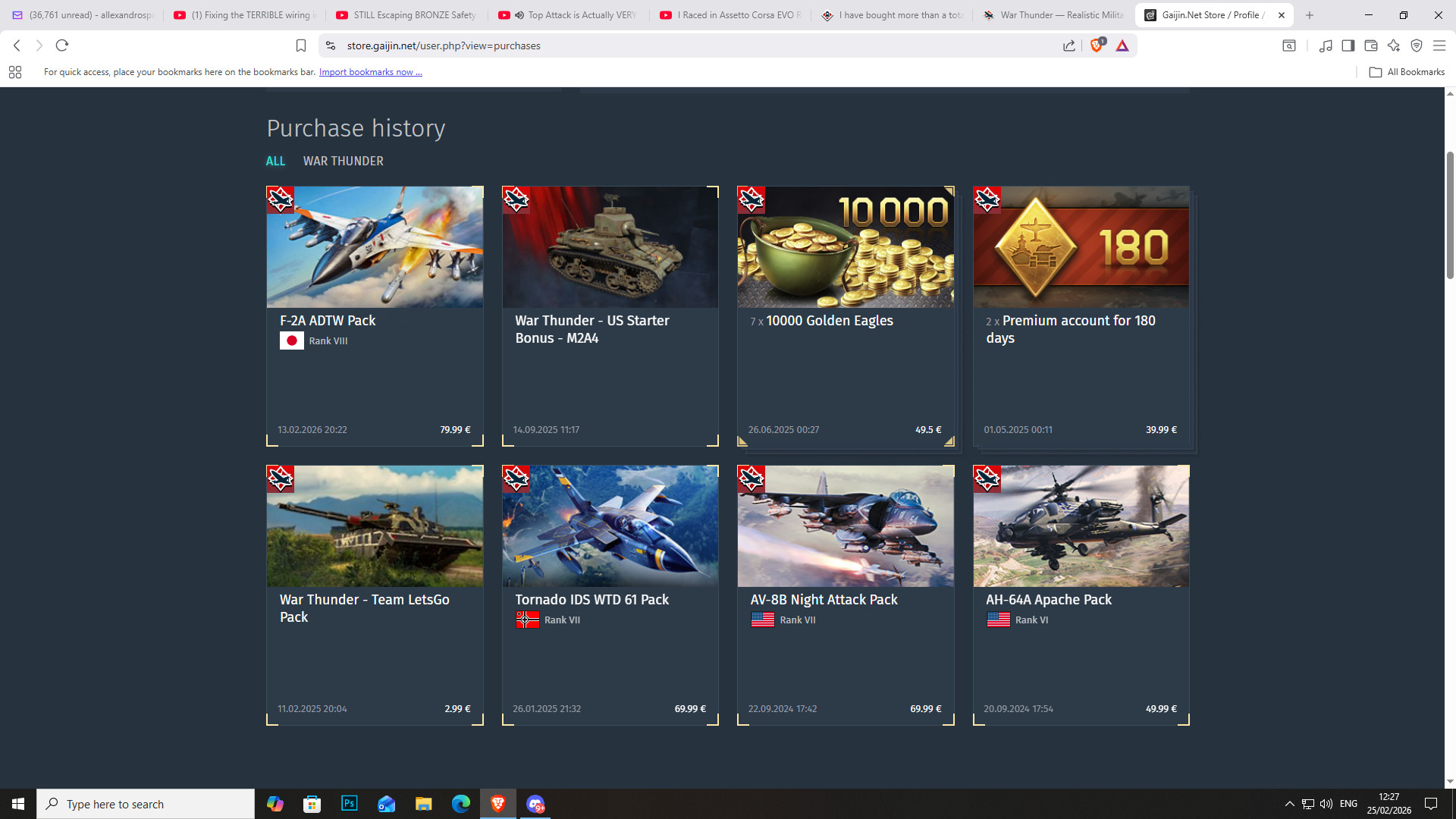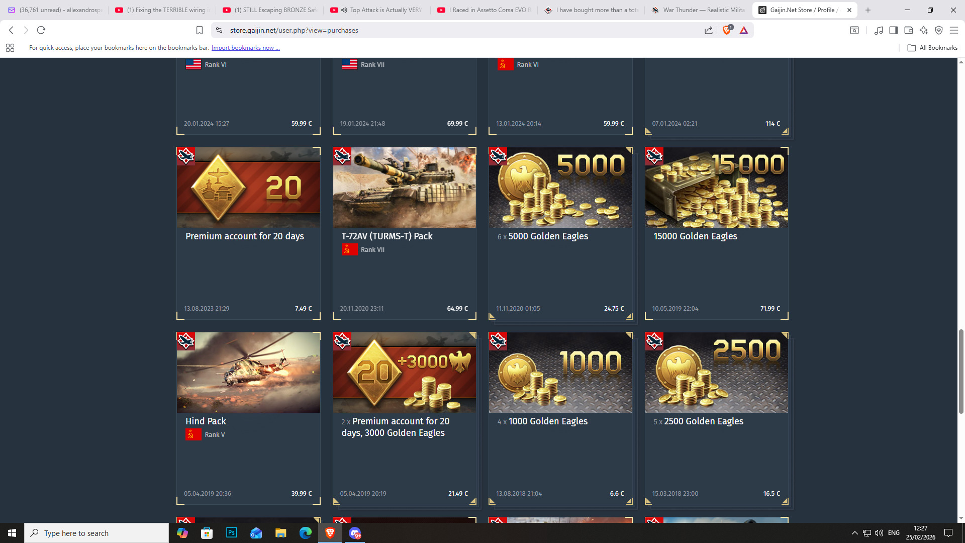 I spent a total of 3,179.61 euros alone in GE, giving me a total of 617,000 GE, honestly, two months worth of night shifts, not bad, however thats just GE, vehicle packs included is a whole different story that I’m not jumping into anytime soon.