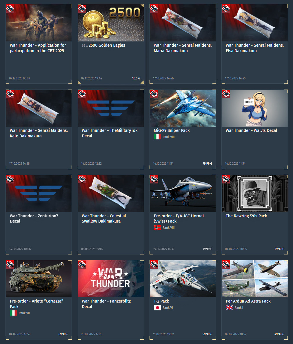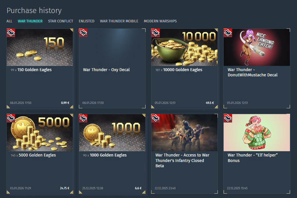 I got 0 bought and play warthunder since 2016…am i more sane than you?