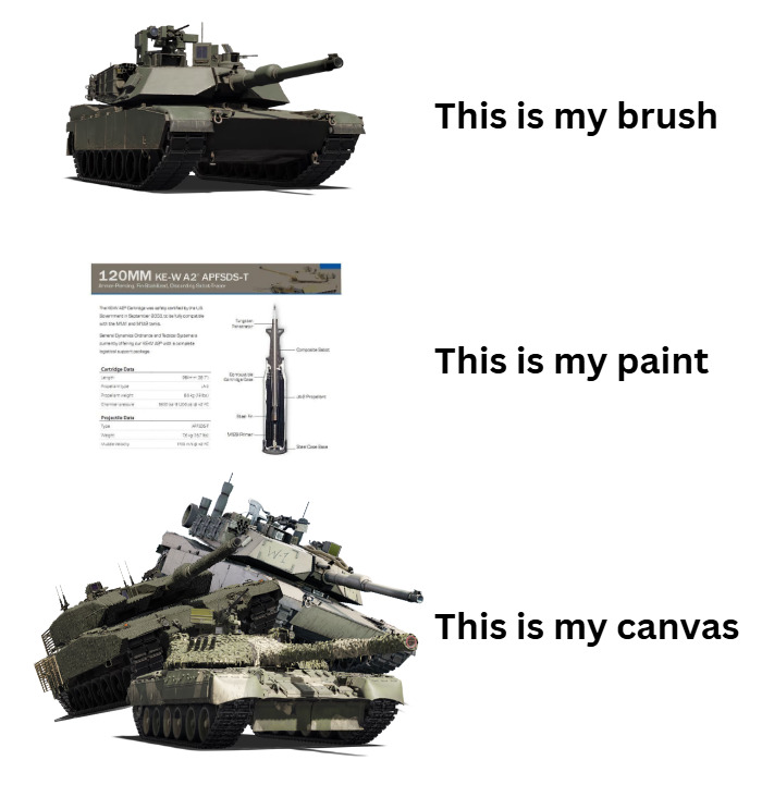 But even if a Nato tank finds a Hull down spot, Russian shells can just nuke you through your Mantlet because god forbid a NATO tank be able do what its built to do.