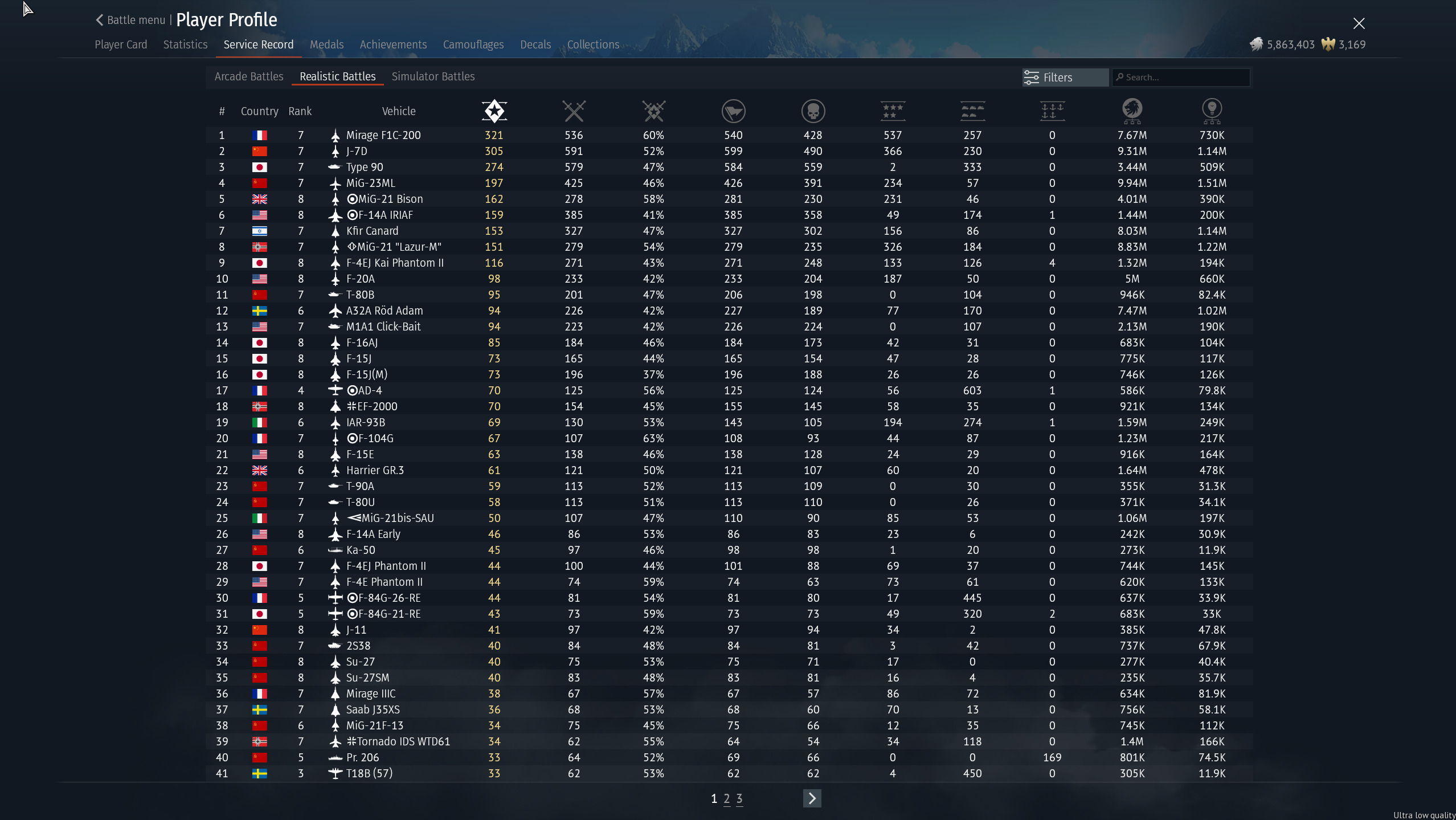 Which you don’t play as much. I have shown all columns at least, didn’t hide number of matches. Regardless, grind is fine is either maliciour ragebait or silly assessment, caused by playing premium time premium vehicles most of the time. You are getting at least 3x RP and 4x SL. Free to play people get 1X of both.