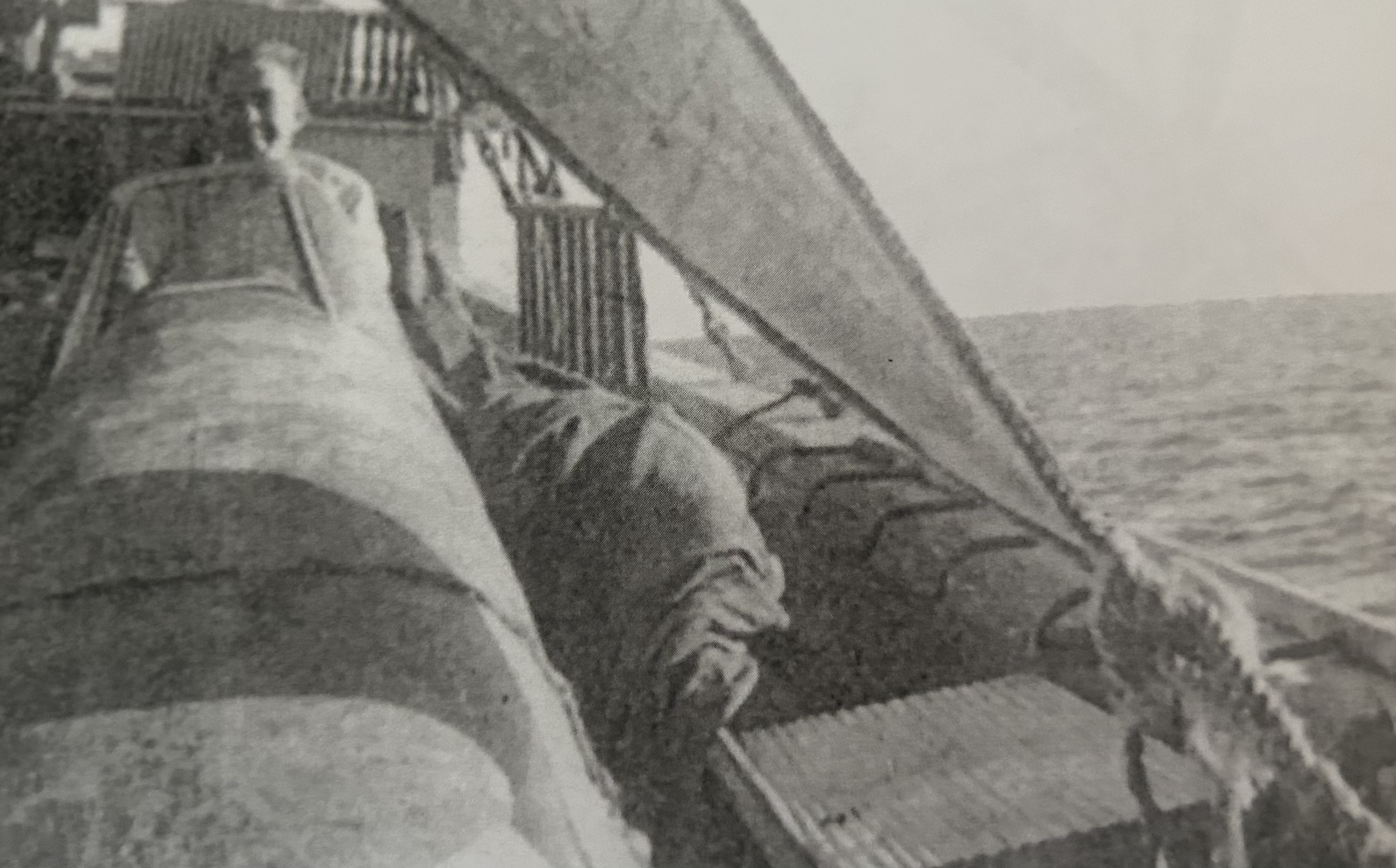 The second pair of mustangs strapped to the deck of a boat.