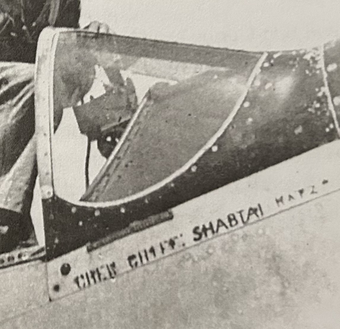 Chalk Donald Duck drawing and writing on D.191’s IAF roundel, and the chalk love note previously on one of the mustangs.