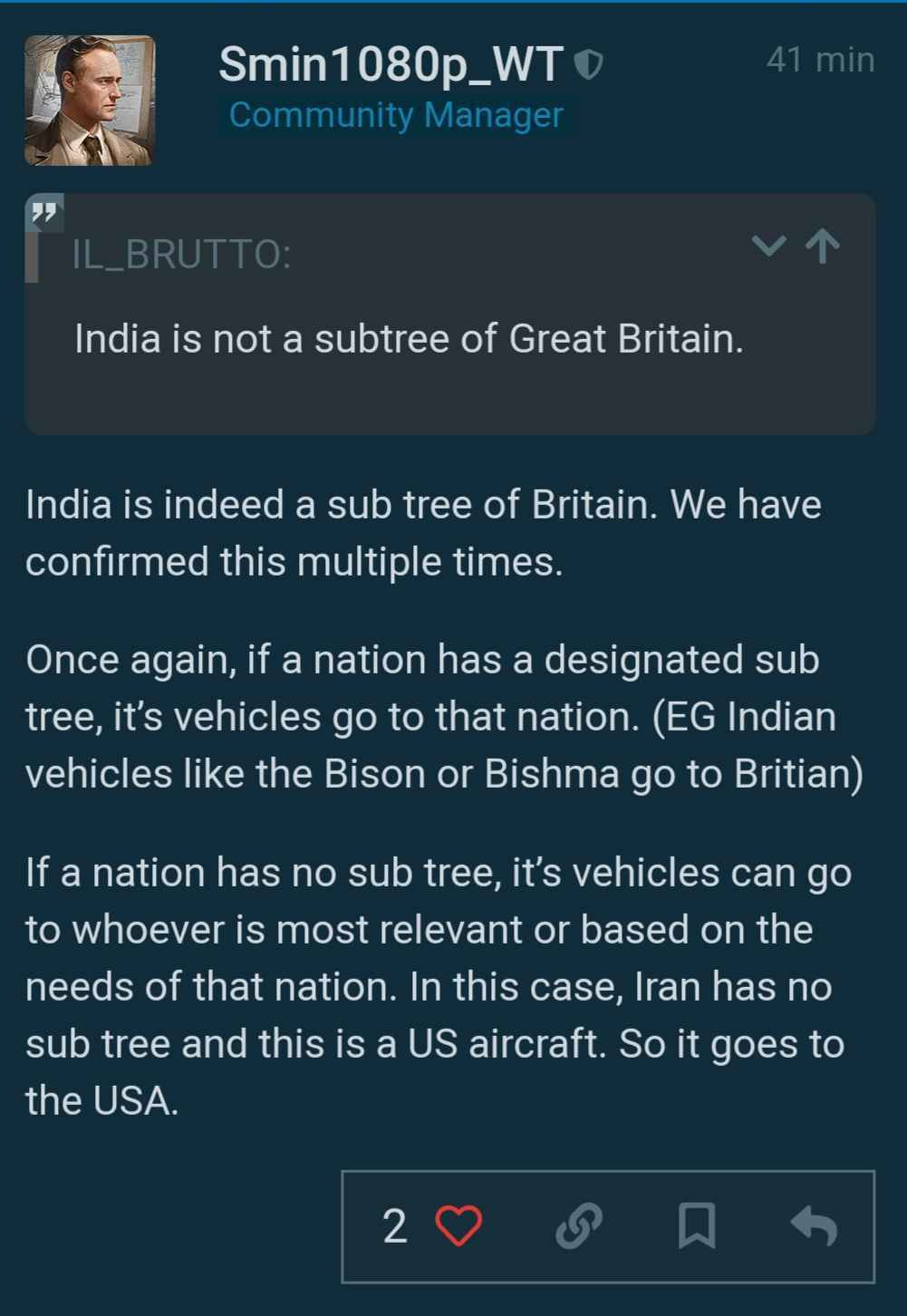 No other country has a single premium/event/squadron vehicle considered a sub-tree.