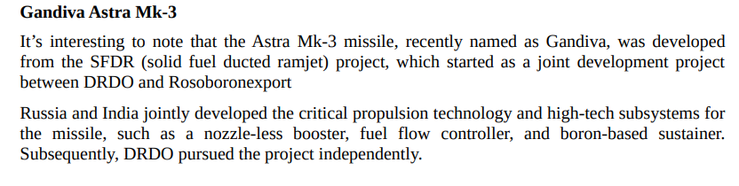 not surprising tbh since Russia did already develop and test ramjet r77 back in the 90s, makes sense India would get assistance from them