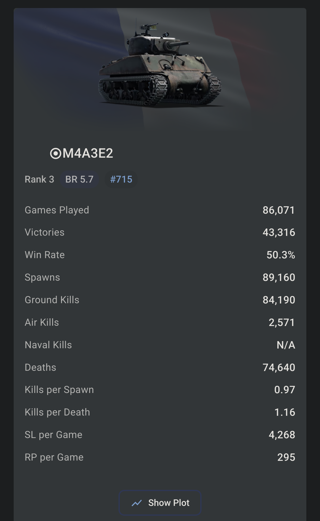 I usually am on the lookout for tanks on my team, i even start every battle by doing some stats about which br i’m facing in order to tell which rank is the best to play (br wise), but i guess there’s some tool somewhere that shows how much a tank is played ?