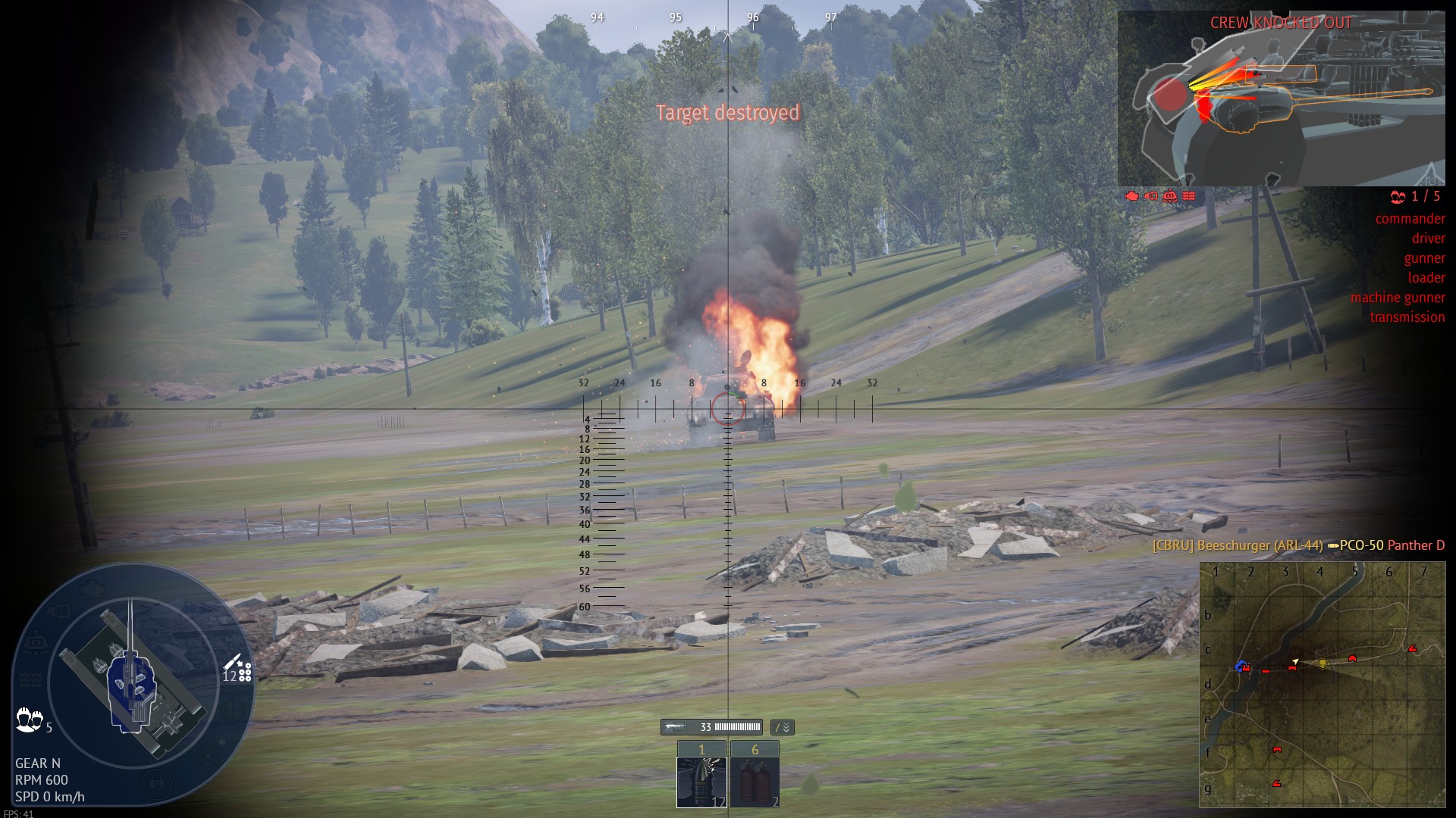 My point was that the IS-3 is dying before I even have to reach for the cupola. Although, now that I look at the first video again it seems to have hit the cupola. I guess the design of where the cupola (and drivers hatch) is in relation to the gun is a weakness that is getting it nuked by autocannon spammers during the process of the autocannon spammer trying to take the gun out. Typically, for others, it’s a step-by-step process I like to do where I take the gun out, then immobilise them (to add further insult), and then finally reach for the cupola to put them out of their misery: