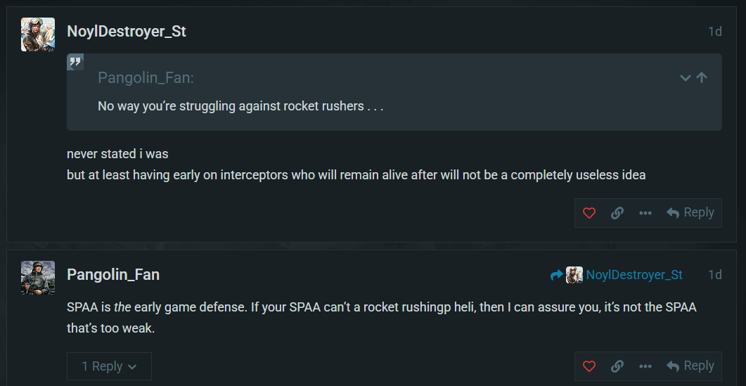 i want to be civil, but logical arguments have no effect here, and any discussion about a tank-only gamemode is derailed by spam, which gives gaijin a plausible reason to ignore and deny everything.