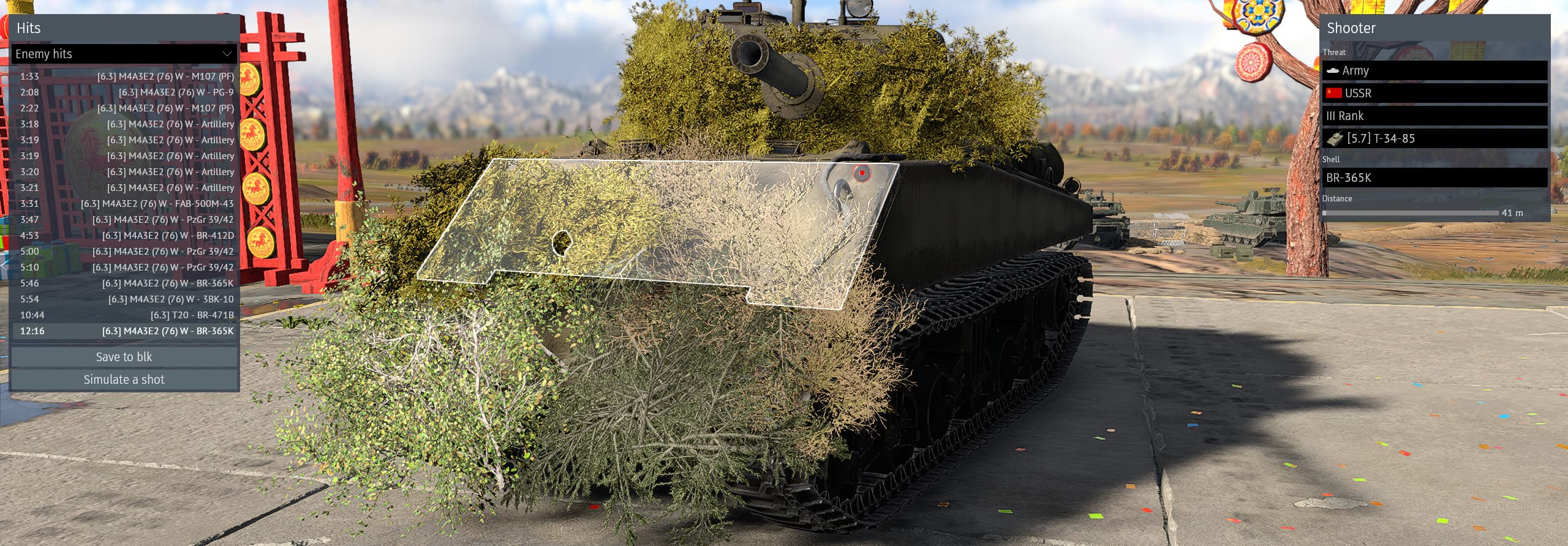 Now you can also see the difference between server and the hit analysis which is interesting. The hit analysis says its about the shells own width further to the right than it actually was.