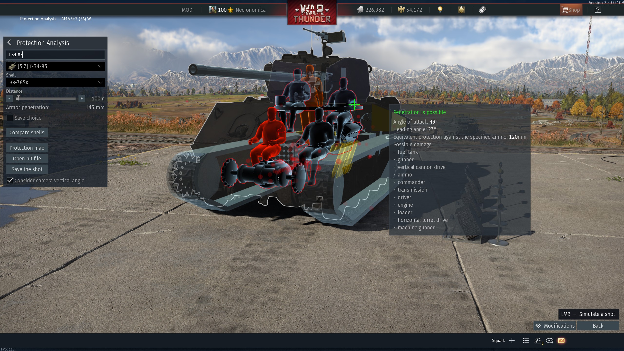 Who knows. I penned the front turret of a US T-34 to the right of the gun, with a single 20mm DM round from a Marder A1 that destroyed the entire tank.