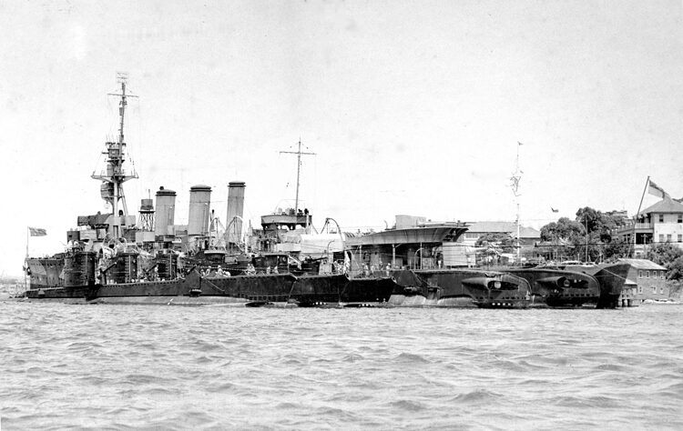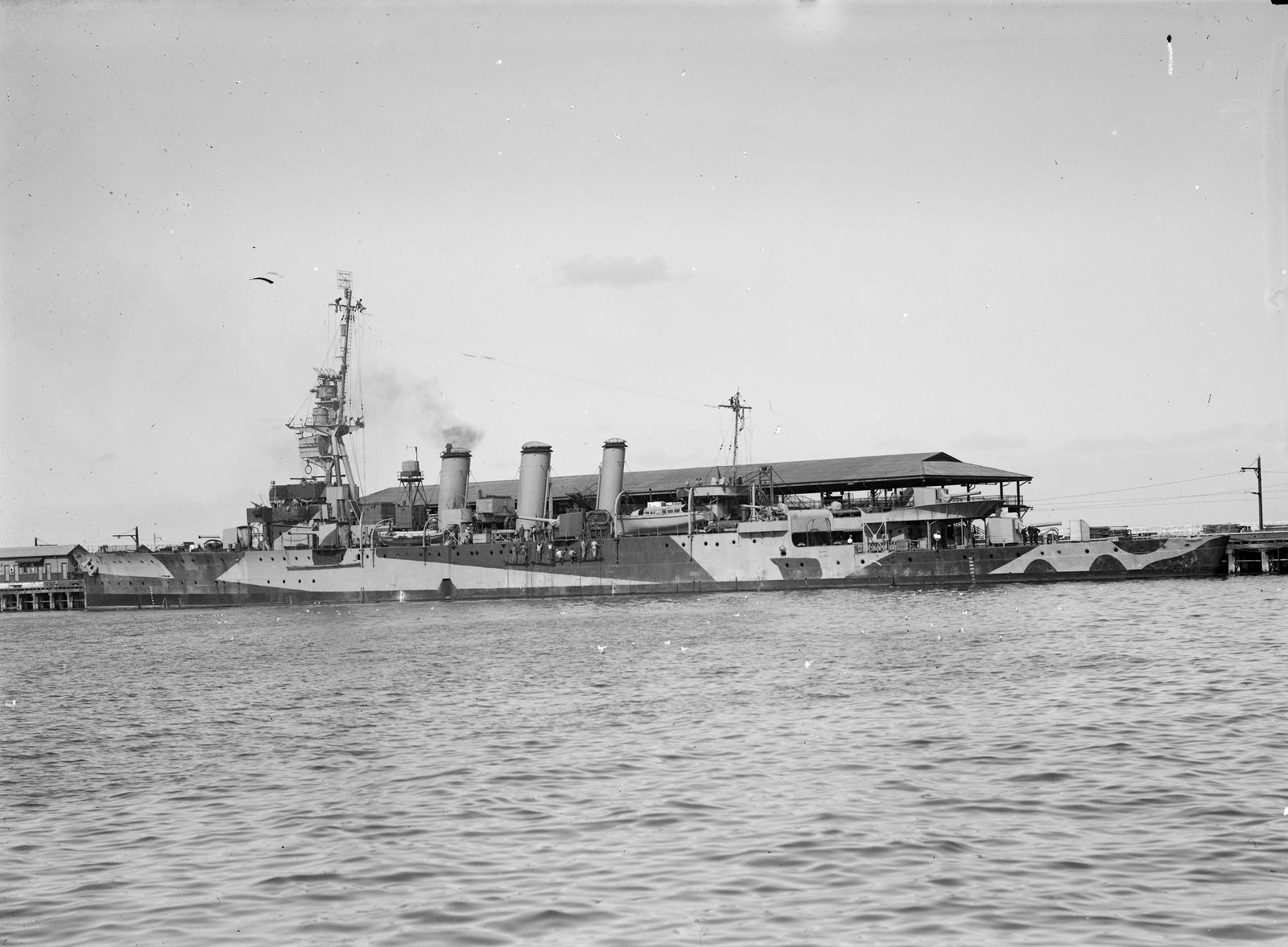 Laid down by the Commonwealth Naval Dockyard on Cockatoo Island, New South Wales, on the 20th of November 1915, launching on the 27th of July 1918. However due to shortages of material, namely the loss of the Turbine forgings en route to Australia due to ‘enemy action’. Lead the cruiser to be significantly delayed in fitting out. During this period further modifications were being made to the design, which slightly delayed it further.
