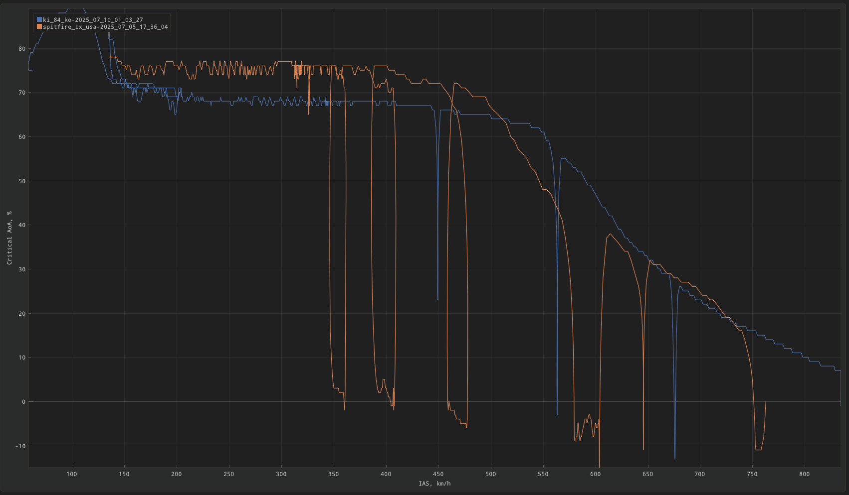 Damn, you mentioned the Ki-84 and I meant to test that as well. I think I’ve got AoA in my data, but not sure if I have critical AoA in there.