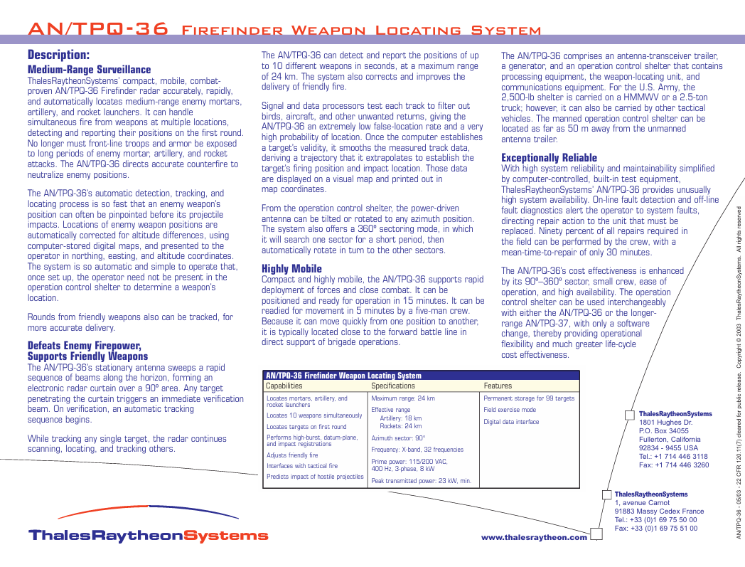 Something else that is interesting is that the F1, per Raytheon, has the counter battery capabilities that arrived to the US in the A3.