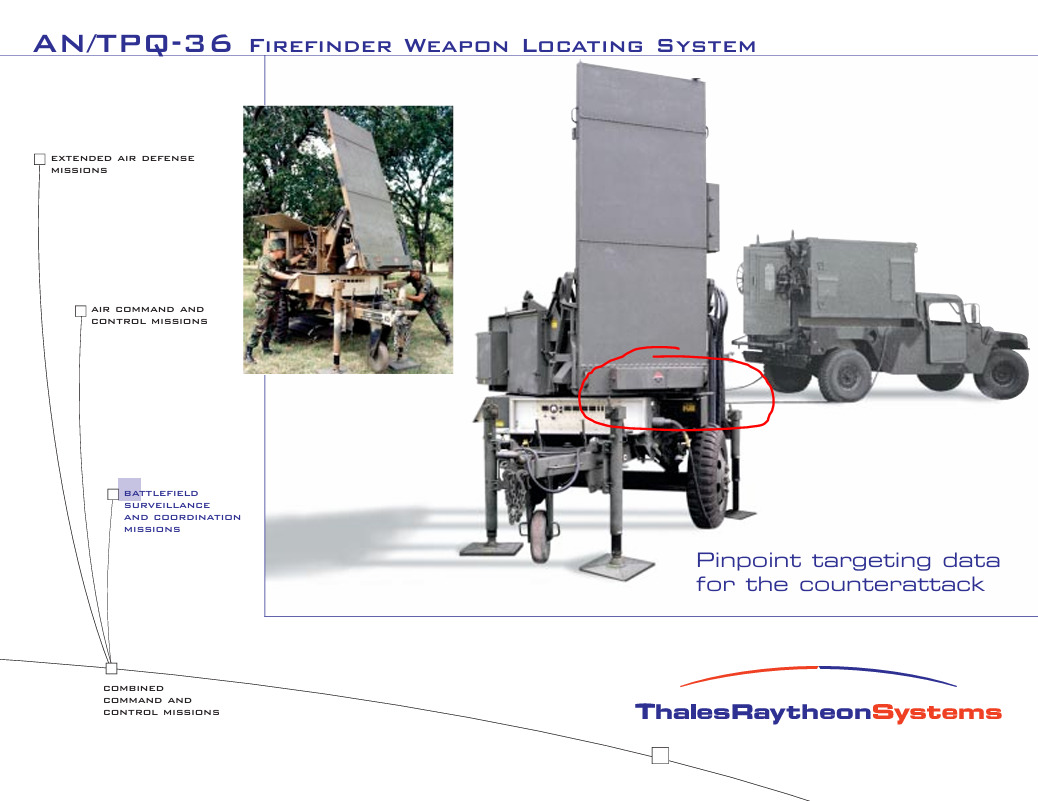 One identifying feature of the initial makes of the TPQ-36 is that the assembly present here retains no external hump, its a singular rectangle, I also have no knowledge of any general search radar functionalities of the TPQ-36 before the A.