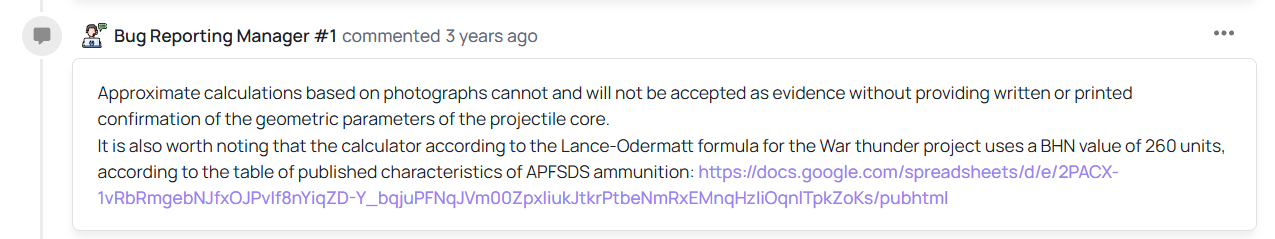 Possible solutions: If getting official data is not possible at this time… Y’all could ask for a change in the acceptance criteria for bug reports. That’s the only other foreseeable solution. That could open a whole new can of worms. Might even backfire and be used to buff other already strong tanks.