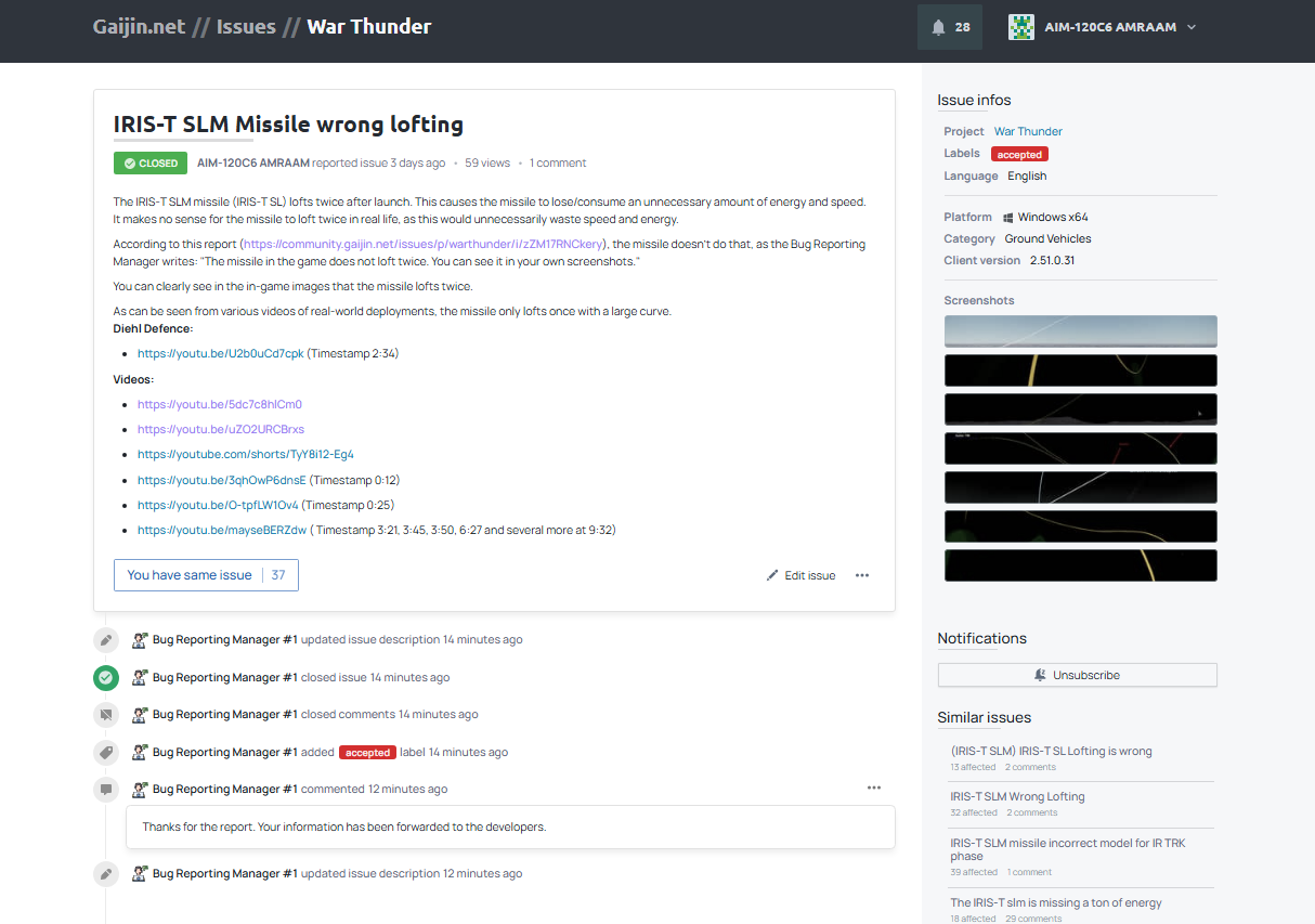 I wonder if I make a really simple SLM report, with literally just the blurb from Dhiel that explicitly states the IRIS-T is highly resistant to blinding lasers if they’ll shoot it down again by pretending they didnt see the words “highly resistant to” and “modern blinding lasers”. I’m wondering if the original bug reports had too many words for them to be able to figure out.