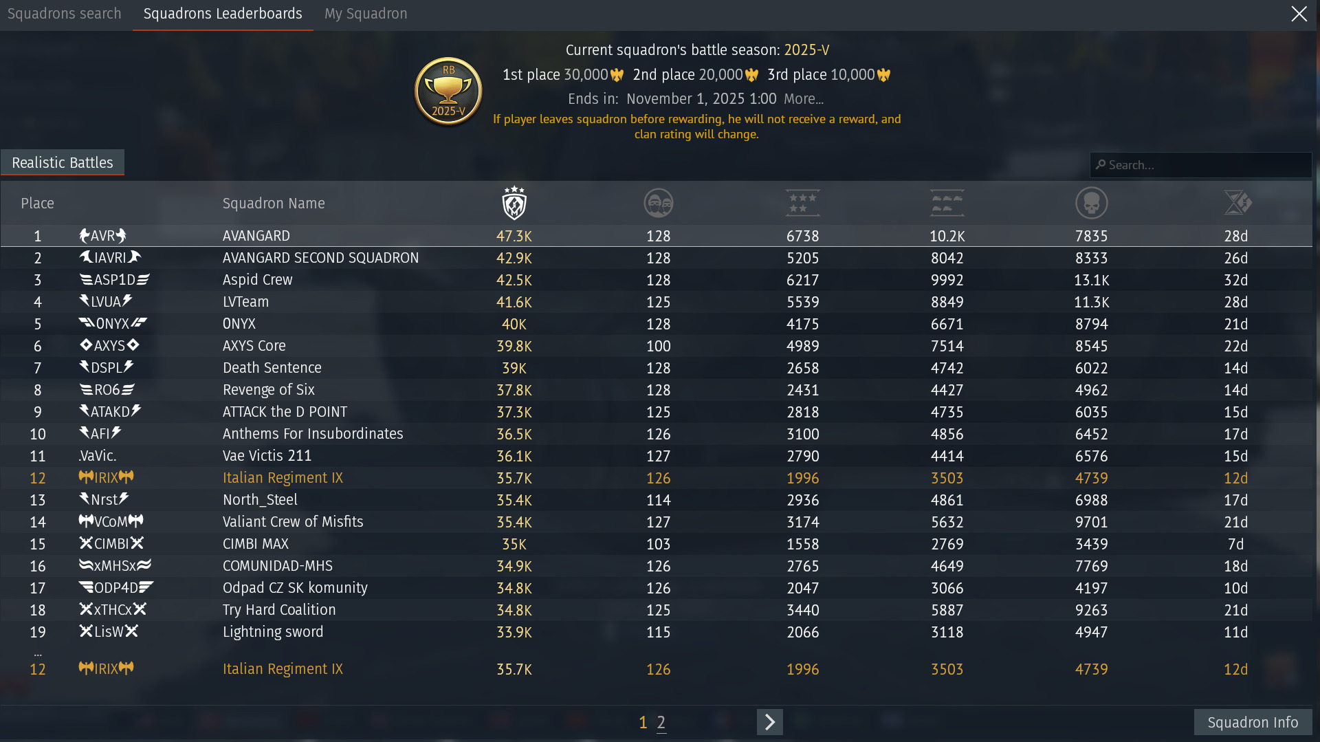 Abbiamo anche una entry squadron, IRIX2, dove non è obbligatorio partecipare alle Squadron Battles, ma si richiede comunque una certa attività in gioco.